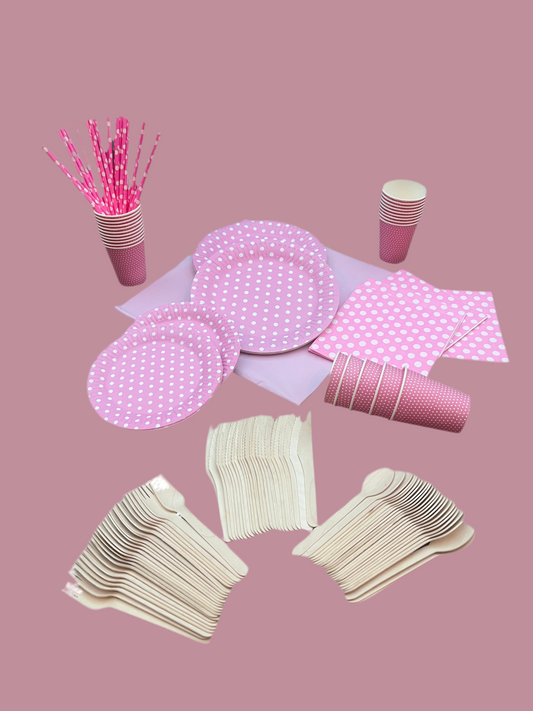 Disposable tableware 201 pcs - Polka Dots Pink.