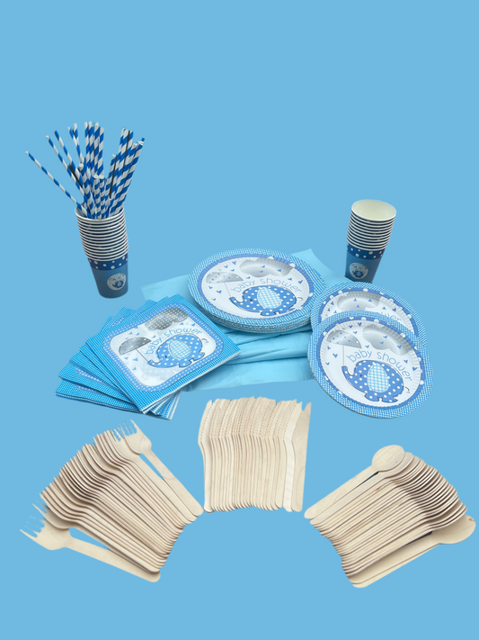 Disposable tableware 201 pcs - Baby Shower Blue.