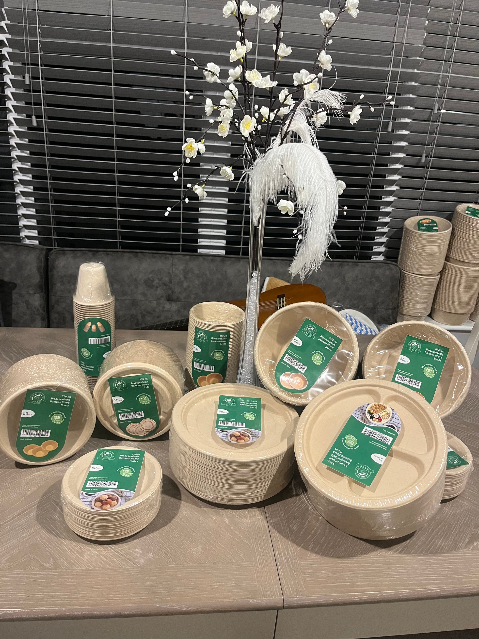 ECO Friendly bamboo fibres 9 inch 3 compartments plate. Model PBP-93, 50 pcs